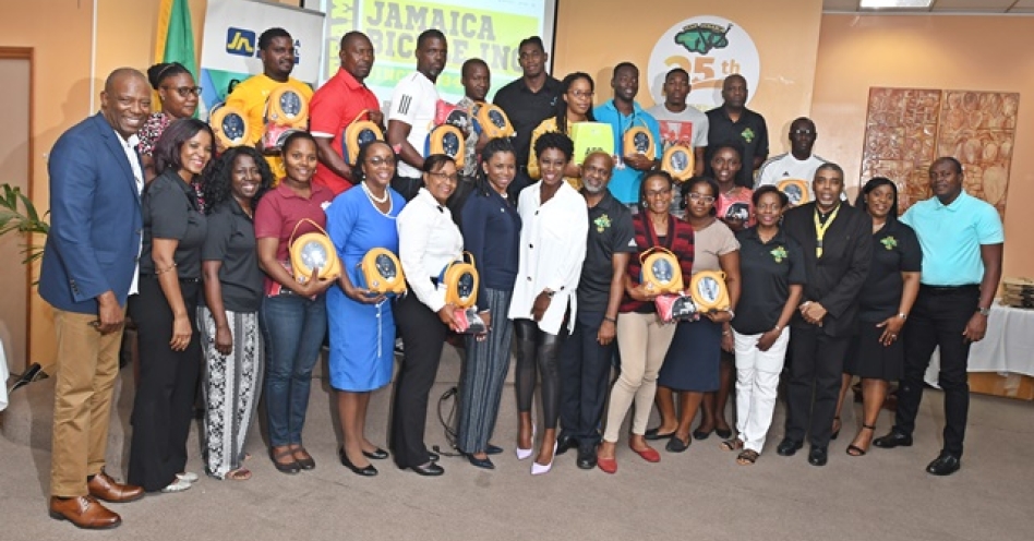 To mark 25 years of service to Jamaica’s athletes, Team Jamaica Bickle (TJB) made a commitment to donate 25 automated external defibrillators (AEDs) to schools in 2019 under its ‘Defibrillator to Schools’ programme. The organization was however able to donate 35 units, 10 more than planned through the help of kind sponsors.