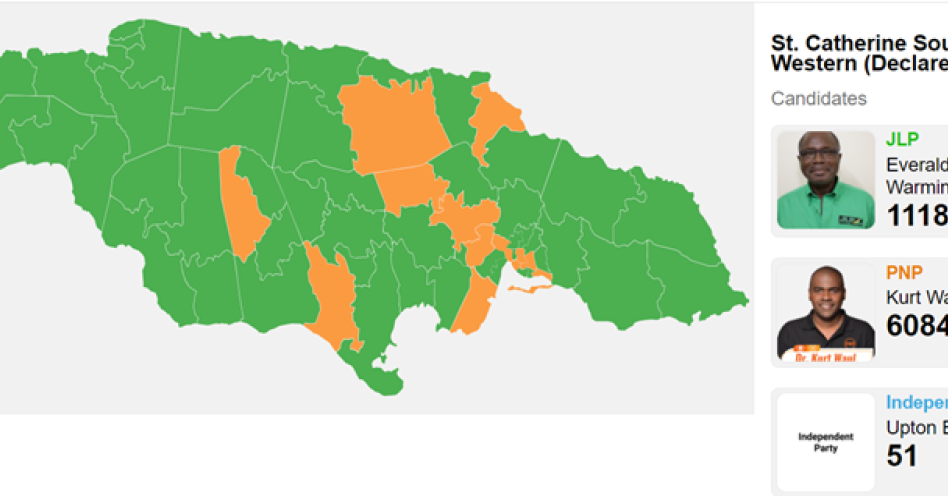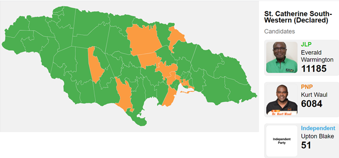 The Jamaica Labour Party (JLP) incumbent polled 11,185 votes to Dr Kurt Waul’s 6,084 for the People’s National Party (PNP). Independent candidate Upton Blake received 51 votes.