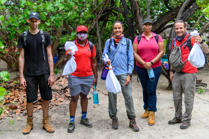 Treya-Ann Picking, environmental officer at NEPA, and the team of NEPA field rangers led the mile-and-a-half trek through swamp and dense mangroves to the dry limestone forest release sites above Manatee Bay.
