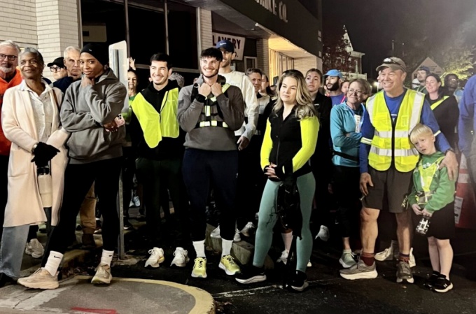 Runners head out from Fleet Feet for a fund run supporting Jamaican relief on Nov. 5, 2025. (Photo credit: Ronni Newton)